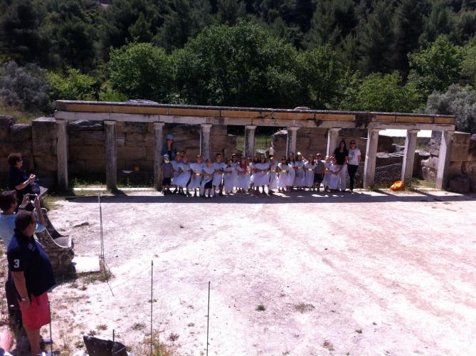 Μια που βρεθήκαμε σε αυτόν τον πανέμορφο χώρο αποφασίσαμε να αξιοποιήσουμε το Αρχαίο θέατρο παρουσιάζοντας στους γονείς μας <την Ειρήνη του Αριστοφάνη >.